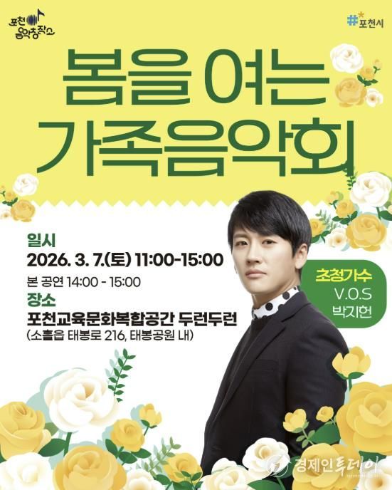 경제인투데이 류현민 기자 | 포천시는 오는 3월 7일 포천시 교육문화복합공간 두런두런에서 ‘포천음악창작소, 봄을 여는 가족음악회’를 개최한다.