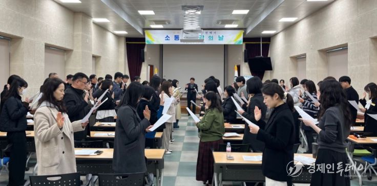 이날 다짐식에서는 전 직원이 함께 청렴실천 서약서를 낭독한 후 서명하며, 법과 원칙을 준수하고 반부패 활동에 적극 참여할 것을 다짐했다.