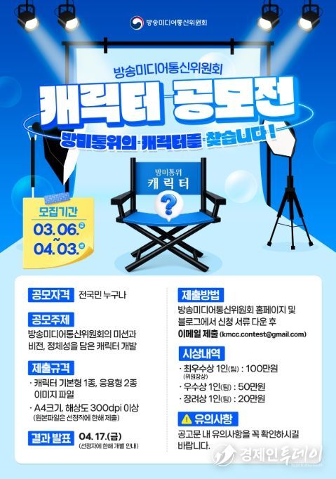 김종철 방미통위원장은 "기관의 새로운 얼굴이 될 캐릭터를 국민과 함께 만들어 가고자 한다"면서 "참신한 아이디어와 많은 참여를 기대한다"고 말했다.