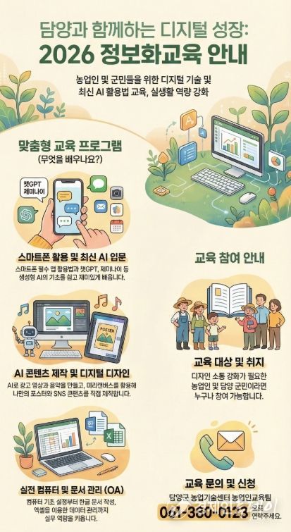 경제인투데이 류현민 기자 | 담양군은 지역 농업인의 디지털 소통 능력을 키우고 스마트한 농촌 환경을 조성하기 위해 ‘2026년 농업인 정보화 교육’을 추진한다.