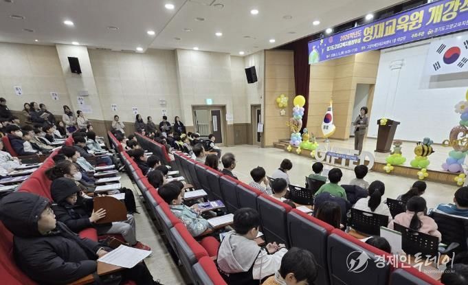 경제인투데이 류현민 기자 | 경기도고양교육지원청은 12일 부설 영재교육원 개강식을 개최했다. 고양미래인재교육센터 대강당에서 열린 개강식은 학생·학부모·지도교사 등 300여 명이 참석한 가운데 창의적 미래 인재로 성장할 학생들의 새로운 출발을 축하하는 자리로 진행됐다.