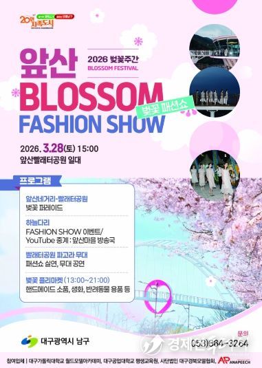 경제인투데이 류현민 기자 | 대구 남구는 오는 3월 28일 지역의 대표 관광명소인 앞산빨래터공원에서 벚꽃패션쇼 이벤트를 개최한다고 밝혔다.
