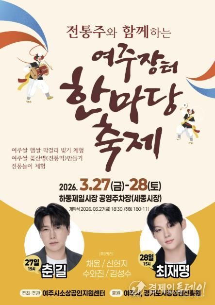 [20260318100439-57476]경제인투데이 류현민 기자 | 여주시는 여주시소상공인지원센터 주최⸱주관으로 지역 전통주 문화를 알리고 지역 상권에 활력을 불어넣기 위한 ‘전통주와 함께하는 '여주장터 한마당 축제'’를 개최한다고 밝혔다.