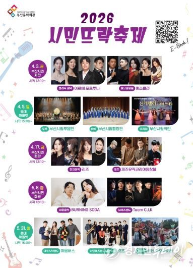 (재)부산문화회관은 오는 4월 3일부터 5월 31일까지 총 5회(10개 팀)에 걸쳐 '2026 시민뜨락축제' 상반기 공연을 개최한다고 밝혔다.