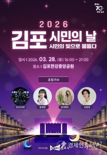 경제인투데이 류현민 기자 | 김포시는 오는 3월 28일 김포한강중앙공원에서 ‘2026년 김포시민의 날 기념행사’를 개최한다고 밝혔다. 이번 행사는 김포시 시승격일(4월 1일)을 기념해 시민의 화합과 자긍심을 높이고, 시의 발전을 함께 기념하기 위해 마련됐다.