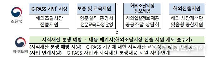 우리 기업의 우수한 기술경쟁력 확보를 위해서는 초기 단계부터 지식재산을 확보하고 보호하는 것이 점점 중요해지는 상황에서, 이번 협약은 해외조달시장 진출 과정에서 발생할 수 있는 지식재산 분쟁과 기술유출 위험에 효과적으로 대응할 수 있도록 양 기관의 정책과 지원사업을 연계하기 위해 마련되었다.
