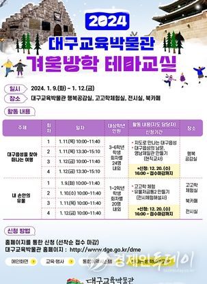경제인투데이 유종운 기자 | 대구교육박물관은 2024년 1월 9일부터 12일까지 초등학생 176명을 대상으로 ‘2024. 겨울방학 테마교실’을 운영한다.