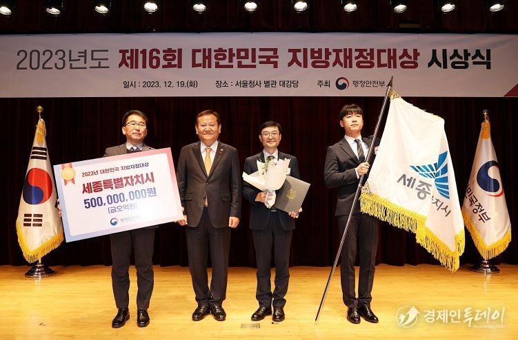 경제인투데이 유종운 기자 | 세종특별자치시가 건전한 지방재정 운용 등의 공로로 올해 열린 대한민국 지방재정 대상에서 국무총리표창 수상과 함께 지방교부세 인센티브 5억 원을 확보했다.