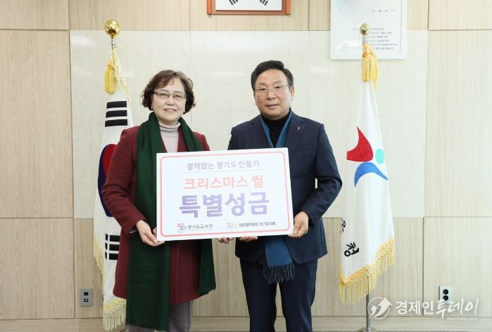 경제인투데이 유종운 기자 | 경기도교육청이 22일 대한결핵협회 경기도지부(부회장 조철상)와 ‘2023년 크리스마스 씰 증정식’을 갖고 결핵 퇴치를 위한 성금을 전달했다.