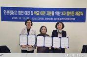 경제인투데이 류현민 기자 | 인천광역시교육청은 12일 인천시청, 사단법인 청소년인권복지센터 내일과 함께 인천청담고등학교의 법인 이전 및 학교 이전 지원을 위한 3자 합의를 체결했다. 이번 합의에는 인천청담고등학교의 법인을 현 법인인 청소년인권복지센터 내일에서 가톨릭아동청소년재단으로 이전하고, 이전을 2026년 2월 28일까지 완료한다는 내용이 담겼다. 또한 인천시청은 이전에 필요한 행정절차를 지원하고, 인천시교육청은 2026학년도 학사 운영이 안정적으로 이루어지도록 교육·행정 지원을 추진하기로 했다. 도성훈 교육감은 “이번 합의는 학생들의 학습권 보호와 학교 운영의 안정성을 고려해 기관 간 역할을 명확히 한 것”이라며 “학교 이전과 법인 변경이 원활히 진행될 수 있도록 지원하겠다”고 말했다.