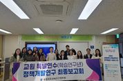 경제인투데이 류현민 기자 | 충청북도교육청 직속기관 교육연구정보원은 2일, 충북교육의 철학과 비전을 바탕으로 교사들의 전문성 강화와 학교현장 발전을 위한 학습연구년 정책개발연구 최종보고회를 개최했다. 최종보고회는 지난 9월에 실시된 중간보고회에서 논의됐던 연구 내용을 보완하고 연구 성과를 마무리하는 활동으로 교사의 연구문화 조성, 충북교육의 질 향상, 현장 밀착형 실행연구, 역량개발 강화를 통한 학교현장지원을 목표로 진행됐다. 학습연구년 총 48명(유아4, 초등22, 중등22)의 교사가 18개의 팀을 이루어 세미나실(6팀), 학습연구년실(6팀), 언플러그드활동실(6팀)에서 ▲교육시책 ▲초‧중등 IB 프로그램 ▲초등 공동교육과정 ▲중등 참여형 수업 등 18개의 주제에 대해 발표했다. 이찬동 교육연구정보원장은 “이번 최종보고회는 학습연구년 교사가 주제별로 연구한 정책연구의 최종 운영성과를 공유하고 충북교육과 학교현장의 발전을 위한 유의미한 시간이었다. 앞으로도 교육연구정보원은 학습연구년 교사가 정책연구 역량을 함양하고 학교현장과 정책을 잇는 다양한 활동을 적극적으로 지원하겠다.”라고 말했다.