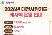 경제인투데이 류현민 기자 | 대전시는 1월 5일부터 지역화폐 ‘대전사랑카드’ 운영을 시작한다. 시는 올해 총 5,000억 원 규모 발행을 목표로, 월 30만 원 구매 한도 내 10% 캐시백을 제공해 시민들이 일상생활에서 실질적인 소비 혜택을 체감할 수 있도록 할 계획이다. 특히 중단 없는 운영과 안정적인 제도 정착에 중점을 두고 지역경제 활성화를 도모한다는 방침이다. 앞서 대전시는 2025년 421억 원의 예산을 투입해 7월부터 대전사랑카드를 운영했으며, 월 50만 원 구매 한도, 최대 13% 캐시백을 제공한 바 있다. 이를 통해 약 3,500억 원 규모의 발행 실적을 기록하며 소비 진작과 소상공인 매출 회복에 크게 기여했다. 또한 지난해 9월에는 지역사랑상품권 발행에 대한 국가 지원 의무화를 주요 내용으로 하는 관련 법 개정안이 국회를 통과했으며, 2026년 1월부터 시행 중이다. 박제화 대전시 경제국장은 “대전사랑카드는 시민에게는 실질적인 할인 혜택을 제공하고, 소상공인에게는 매출 증대로 이어지는 중요한 지역경제 활성화 수단”이라며 “2026년에도 중단 없는 대전사랑카드