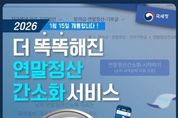 경제인투데이 류현민 기자 | 더 똑똑해진 연말정산 간소화 서비스 2026년 1월 15일 개통합니다! ■ 더~욱 새로워진 연말정산 간소화 서비스 기존 42개 자료+ 3개 자료 추가 1. 발달 재활 서비스 이용 증명 2. 장애인 활동 지원 급여 본인 부담금 자료 3. 체육시설 이용료 자료 ■ 더~욱 정교해진 소득 기준 초과 부양가족 명단 제공 소득 금액 100만 원 초과 부양가족에 대한 정보 연말정산 간소화 서비스 자료 조회 화면에서 안내 * 근로소득만 있는 경우 총급여 500만 원 - 소득 기준 초과 부양가족 내역 * 자세한 사항은 국세청 블로그를 참고해주세요! ■ AI 전화 챗봇 상담 - 국세 상담센터: ☎126→0번→0번(상담사 또는 AI 상담사 연결) - 세무서: 대표번호→2번→6번(AI 상담사 연결) (AI 상담사) · 주민등록번호 입력 후 본인인증 연말정산 간소화 자료 일괄 제공 현황, 부양가족의 간소화 자료 제공 동의 현황 등 · 생성형 AI 챗봇 상담 시범 운영 경로→홈택스 접속→홈택스 퀵메뉴→챗봇 상담 클릭 *홈택스 ■ 연말정산 유