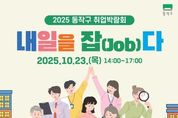 경제인투데이 류현민 기자 | 동작구가 오는 23일 오후 2시 구청 신청사에서 2025 취업박람회 ‘내일을 잡(Job)다’를 개최한다고 밝혔다. 이번 박람회는 구직자의 취업 스트레스 해소와 역량 강화를 지원하기 위해 마련됐다. 관내 유한양행 등 다수의 우수기업과 유관기관이 참여해 채용 및 직업 탐색 기회를 제공할 예정이다. 특히, 올해는 축제 결합형 일자리박람회로서 신청사 곳곳에서 다양한 체험 부스와 부대행사가 함께 운영된다. 먼저, 4층 대강당에서는 관내 유한양행 등 20여 개의 참여기업이 ‘채용부스’를 설치해 구직자를 대상으로 현장 면접과 간접 채용을 진행한다. 또한 구청을 비롯해 동작취업지원센터, 서울관악고용복지+센터 등 유관기관에서 준비한 ‘홍보부스’에서는 취업·직업훈련·고용지원 정보를 제공한다. 이와 함께 4층 소회의실에는 △AI 인적성 검사 △취업타로 △퍼스널컬러 진단 △이력서 사진 촬영 등으로 구성된 ‘취업지원존’이 마련되며, 이곳에서는 이력서·자기소개서 1:1 컨설팅도 받을 수 있다. 1층 로비에는 △메이크업 아티스트 △아로마 향수 만들기 △네일아트 △캘리그라피