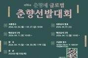 [20260202112252-88250]경제인투데이 류현민 기자 | 남원시는 제96회 춘향제를 맞아 ‘글로벌 춘향선발대회’ 참가자를 2월 2일부터 3월 27일까지 모집한다. 글로벌 춘향선발대회는 춘향의 가치와 정신을 세계에 알리고, 국적과 언어, 문화의 경계를 넘어 현대적 감각으로 재해석한 춘향의 매력을 선보이기 위해 마련된 춘향제 대표 프로그램이다. 특히 제96회 춘향제에서는 ‘춘향의 멋, 세계를 매혹시키다’를 주제로 글로벌 문화 아이콘으로서의 춘향을 조명하고, 참가 대상과 무대를 국제적으로 확대한다. 이번 대회는 단순한 선발을 넘어 문화 교류형 콘텐츠로 운영해 지역 축제를 넘어 세계인이 함께하는 글로벌 문화 플랫폼으로 도약할 계획이다. 참가 자격은 대한민국 국적자뿐만 아니라 해외 국적자도 지원 가능하며, 자세한 모집 요강은 남원시 누리집과 춘향제 공식 홈페이지에서 확인할 수 있다. 대회에서는 전통적 아름다움은 물론 춘향의 정신과 가치에 대한 이해, 글로벌 감각과 소통 역량 등을 종합적으로 평가할 예정이다. 서류심사와 예선심사를 거쳐 선발된 본선 진출자는 4월 30일 열리