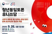 경제인투데이 류현민 기자 | 통일부는 9월 26일 13시, 경기권 통일플러스센터(의정부시 소재)에서 다양한 관점을 가진 청년 70여 명이 모여 ‘광복 80주년과 청년의 역할’을 주제로 '제3차 청년 대상 합의 형성 토론회'를 개최한다. 광복 80주년을 기념하여 개최되는 본 토론회에서는 통일 미래세대인 청년들이 평화·통일에 대해 적극적으로 의견을 주고받으며, 많은 사람들이 공감할 수 있는 통일 담론을 그려나가는 시간을 갖고자 한다. 분임토론에서는 ‘역사의 주체’이자 ‘미래의 설계자’인 청년의 관점에서 통일의 필요성에 대해 이야기를 나누어보고, 미래에 맞이할 광복 100주년의 모습도 자유롭게 그려볼 예정이다. 통일부는 경기권 통일플러스센터에서 개최되는 첫 행사인 본 토론회를 계기로, 경기 센터가 ‘통일행정의 종합 플랫폼’이자 지역 주민과 함께 한반도 평화의 비전을 실현해 나가는 공간으로 발전해 나가길 기대한다. 또한 통일부는 앞으로도 청년들의 통일·대북 정책에 대한 다양한 의견을 수렴하며 지속 가능한 평화·통일정책을 수립하고 추진해 나갈 것이다.
