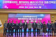 경제인투데이 류현민 기자 | 강원특별자치도는 10월 27일 춘천ICT벤처센터 대회의실에서 '강원특별자치도 첨단바이오 클러스터 조성 미래 전략포럼'을 개최했다고 밝혔다. 이번 포럼은 지난해 '강원 바이오의약품 국가첨단전략산업 특화단지' 유치 이후 클러스터 조성의 본격적인 추진 방향과 미래 전략을 논의하기 위해 마련된 자리다. 행사는 도와 강원일보, 강원테크노파크가 공동으로 주최‧주관했으며, 산업‧정책‧지원 등 다양한 관점에서 강원 첨단바이오산업의 비전과 발전 전략을 공유하고, 산업 전문가, 기업, 학계 간 협력과 교류를 강화하기 위한 취지로 진행됐다. 포럼은 1부 개회식과 2부 기조강연 및 발표 순으로 진행됐으며 개회식에는 김진태 도지사, 박진오 강원일보 사장 등 주요 내빈들과 바이오산업 관련 기관·기업·학계 관계자 150여 명이 참석했다. 2부에서는 ▲기조강연, ▲주제발표, ▲정책토론 순으로 이승규 한국바이오협회 부회장의 ‘바이오산업 현황 및 미래’에 대한 기조강연을 시작으로, 박각노 한국산업기술진흥원 단장이 첨단바이오산업 지역정책에 대한 제언을 발표한 후, 배준학 오라클벤처투자 대표의 바이오벤처생