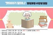 경제인투데이 류현민 기자 | 안성시 중앙도서관은 오는 10월 29일부터 12월 24일까지 매주 수요일 오전 10시부터 12시까지(총9회) 진행되는 『옛이야기 할머니』양성과정의 수강생을 모집한다. 이번 과정은 우리 전통 설화와 구전문화를 이해하고, 이를 바탕으로 어린이들에게 옛이야기를 들려줄 수 있는 이야기 구연 역량을 키우는 특화 교육 프로그램으로 교육은 송경애 강사(한국국학진흥원 및 아름다운 이야기 할머니 교육강사)가 진행하며, 이야기 전달 기법, 발성 훈련, 스토리텔링 실습 등 실질적인 교육 중심으로 구성된다. 참여 대상은 60세 이상 여성 20명으로, 접수는 10월 14일부터 도서관 홈페이지, 전화 또는 방문을 통해 신청할 수 있다. 도서관 관계자는 “지역 어르신들이 삶의 지혜와 전통 이야기를 전하며 세대 간 소통의 다리를 놓는 뜻깊은 과정이 될 것이고 본 과정을 수료한 참여자들은 2026년 ‘책 읽어주기’ 자원봉사 프로그램에 참여할 수 있도록 안내할 계획이다.”라고 전했다.